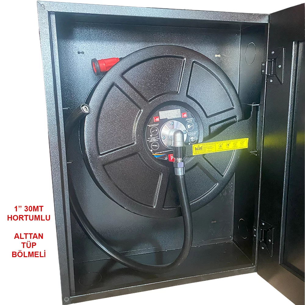 Dekoratif Siyah Camlı Yangın Dolabı-Sıva Üstü 1" 30 Metre Hortumlu