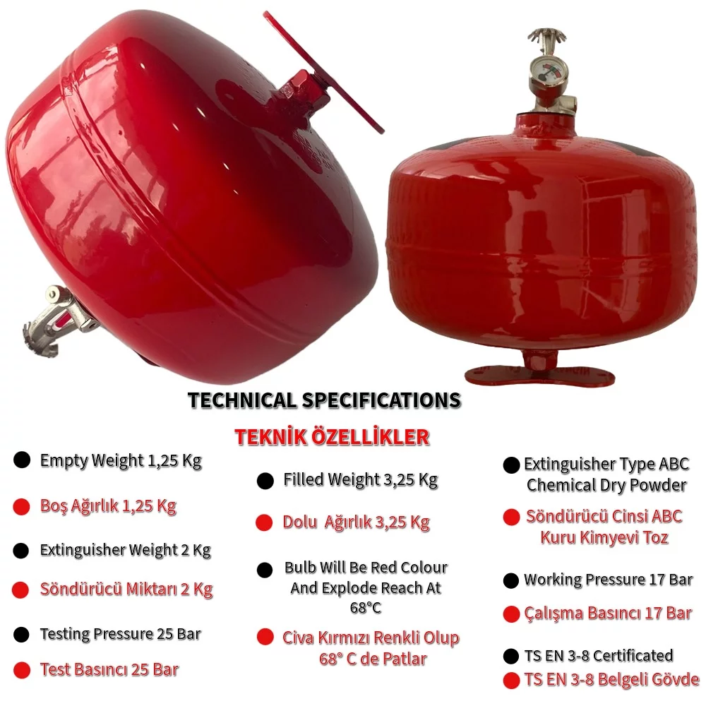 2 Kg Tavan Tipi Sprinkli Otomatik Yangın Tüpü-Teknelerin Motor Dairesi İçin Uygundur