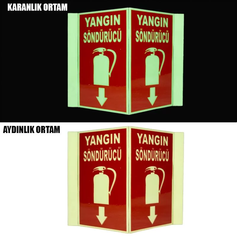 Yangın Tüplerinin bulunduğu depolama sahalarında,acil durumda ulaşılmak istenen yangın söndürme ekipmanına ulaşılmasını kolaylaştıran levhalardır.Panaromik uyarı levhaları,klasik uyarı levhalarından farklı olarak şeklinden dolayı her yönden görünebilir ve dikkat çekicidir.Ayrıca Fotolümeni sayesinde karanlık ortamlarda yer belirleme açısından kolaylık sağlar.