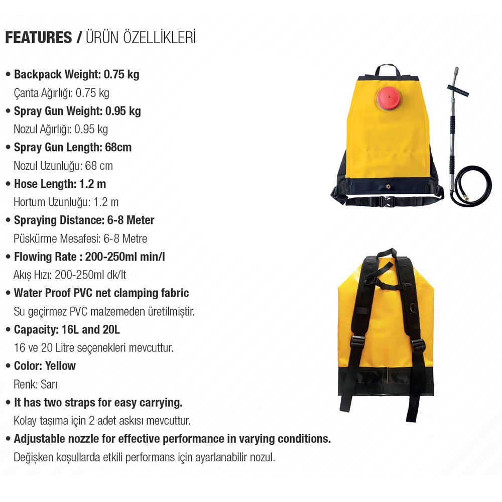 Sırt Pompası-Orman Yangınları İle Mücadele Sırt Çantası-Püskürtücü-Sırt Tulumbası